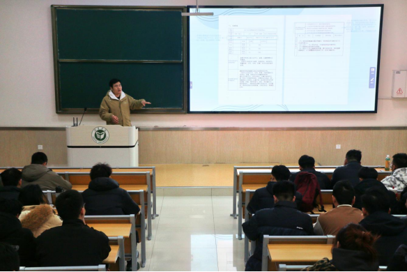 景峥围绕“双创赛事优质项目的核心评判标准”“赛事申报书精准撰写技巧”“契合赛事导向的选题方向挖掘”三大核心模块展开详细讲解。选题方面要立足机电专业特色,紧扣产业升级需求与社会民生痛点,挖掘既符合赛事导向又具备落地潜力的项目方向,避免盲目跟风。在申报书撰写部分,景峥对项目背景、研究目标、技术路线、预期成果等板块的撰写规范和优化方法进行逐一梳理,指导学生如何凸显项目核心优势。